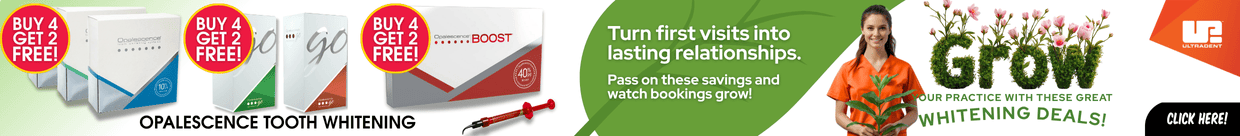 Boost your dental practice with Ultradent - the number one whitening brand worldwide. Use professional whitening as a powerful offer to draw new patients and keep them coming back with free top-up syringes at their 6-monthly check-ups. It’s a simple way to turn one treatment into ongoing care and lasting loyalty!