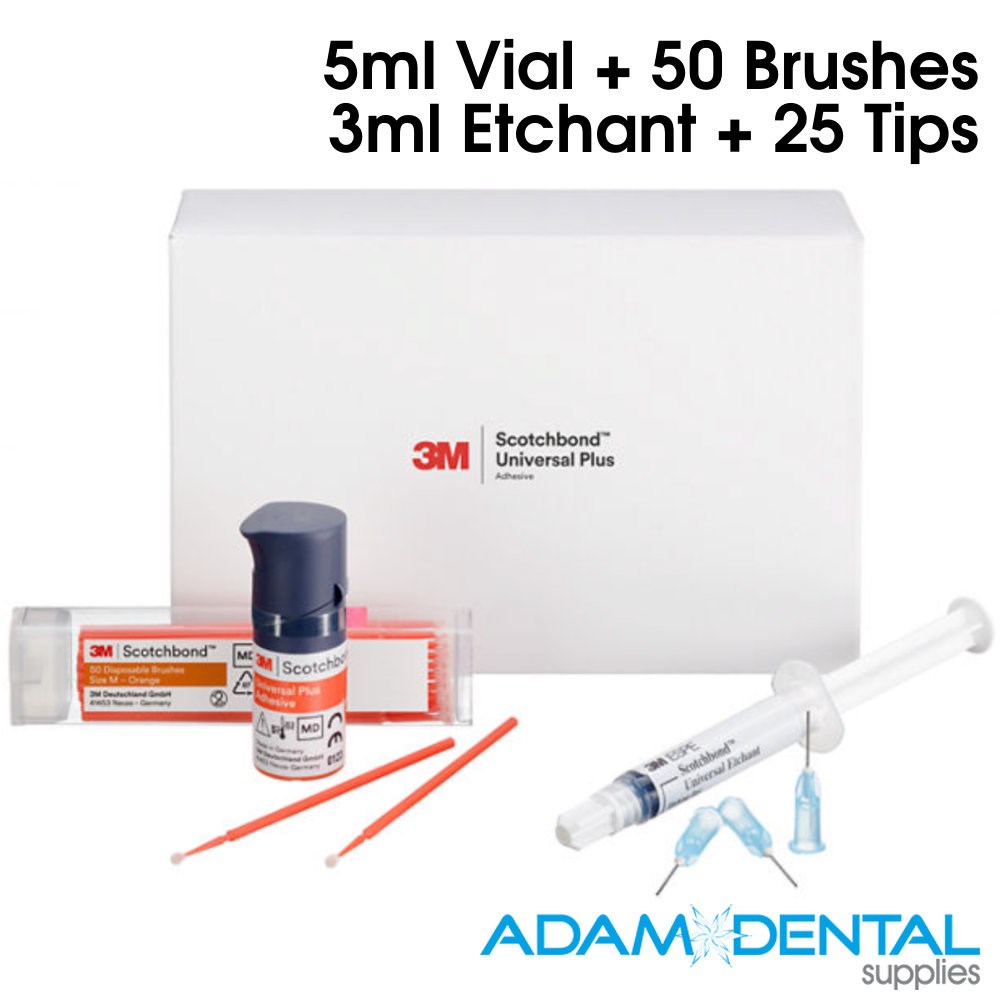 1 x 5ml Vial 50 disposable brushes 1 x 3ml syringe 3M™ Scotchbond™ Universal Etchant 25 etchant dispensing tips Technique guides Instructions for use |